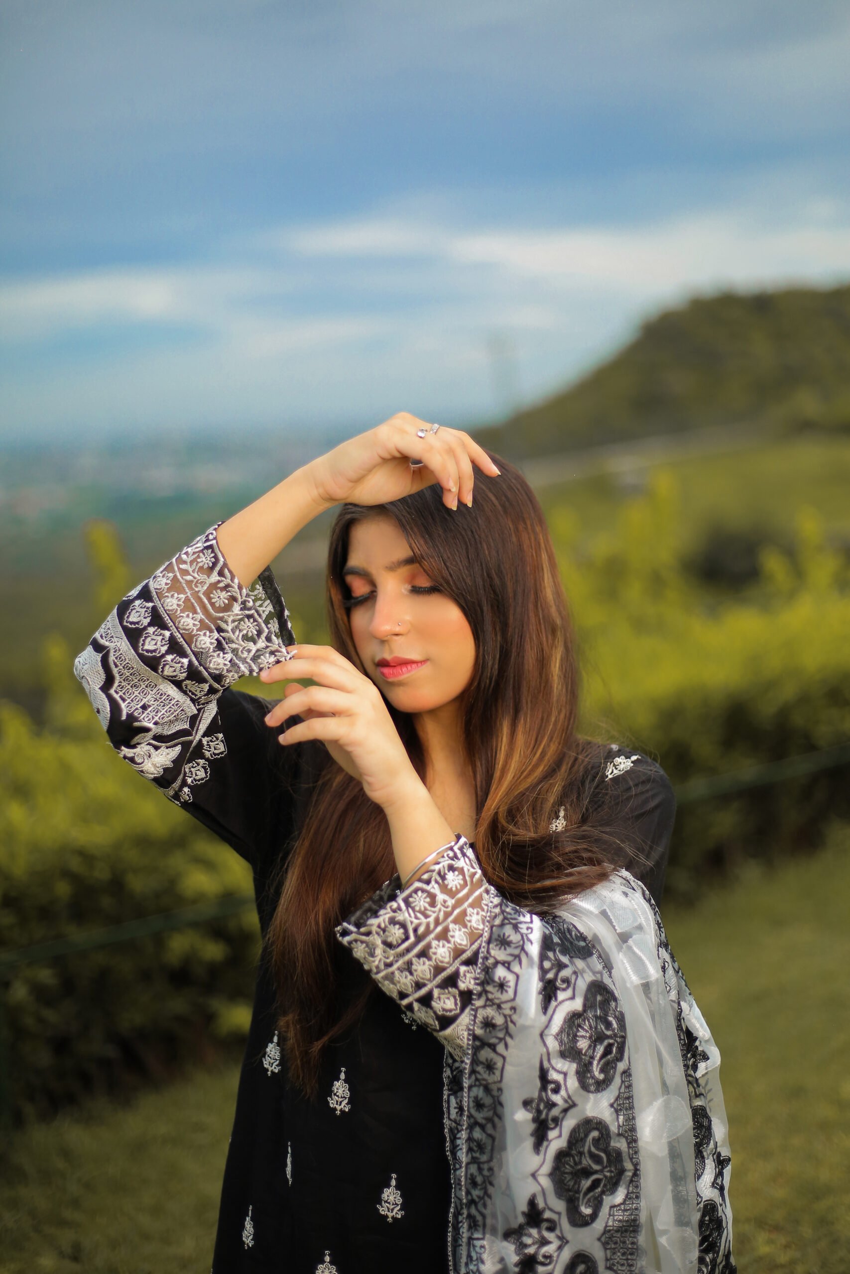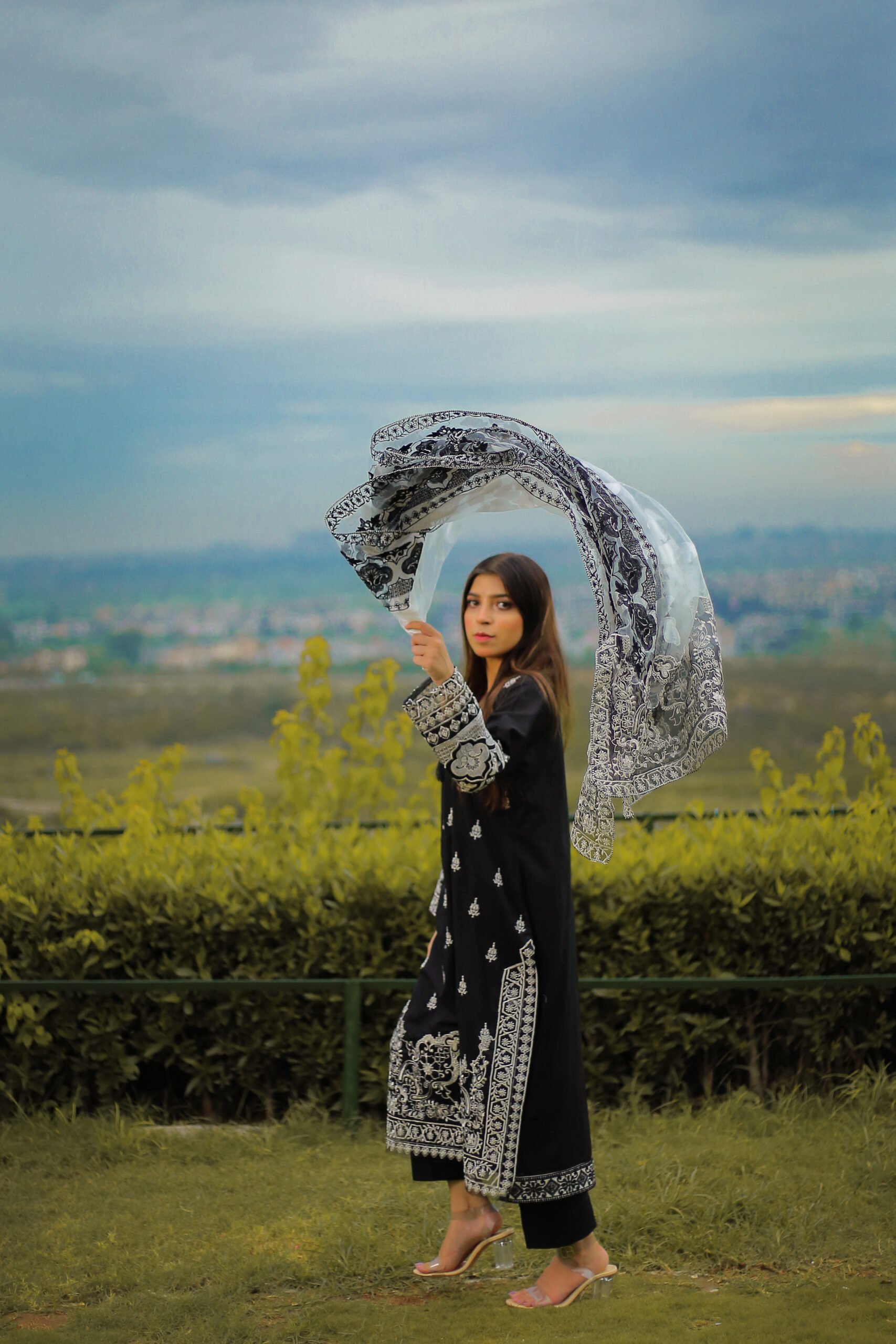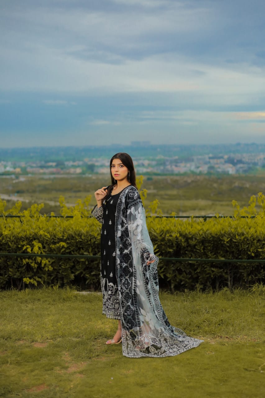 This outfit sounds lovely! The combination of embroidered shirt and dupatta, paired with plain trousers, creates a beautiful and balanced ensemble. The chiffon dupatta adds a touch of elegance and sophistication, making it perfect for formal events or special occasions.